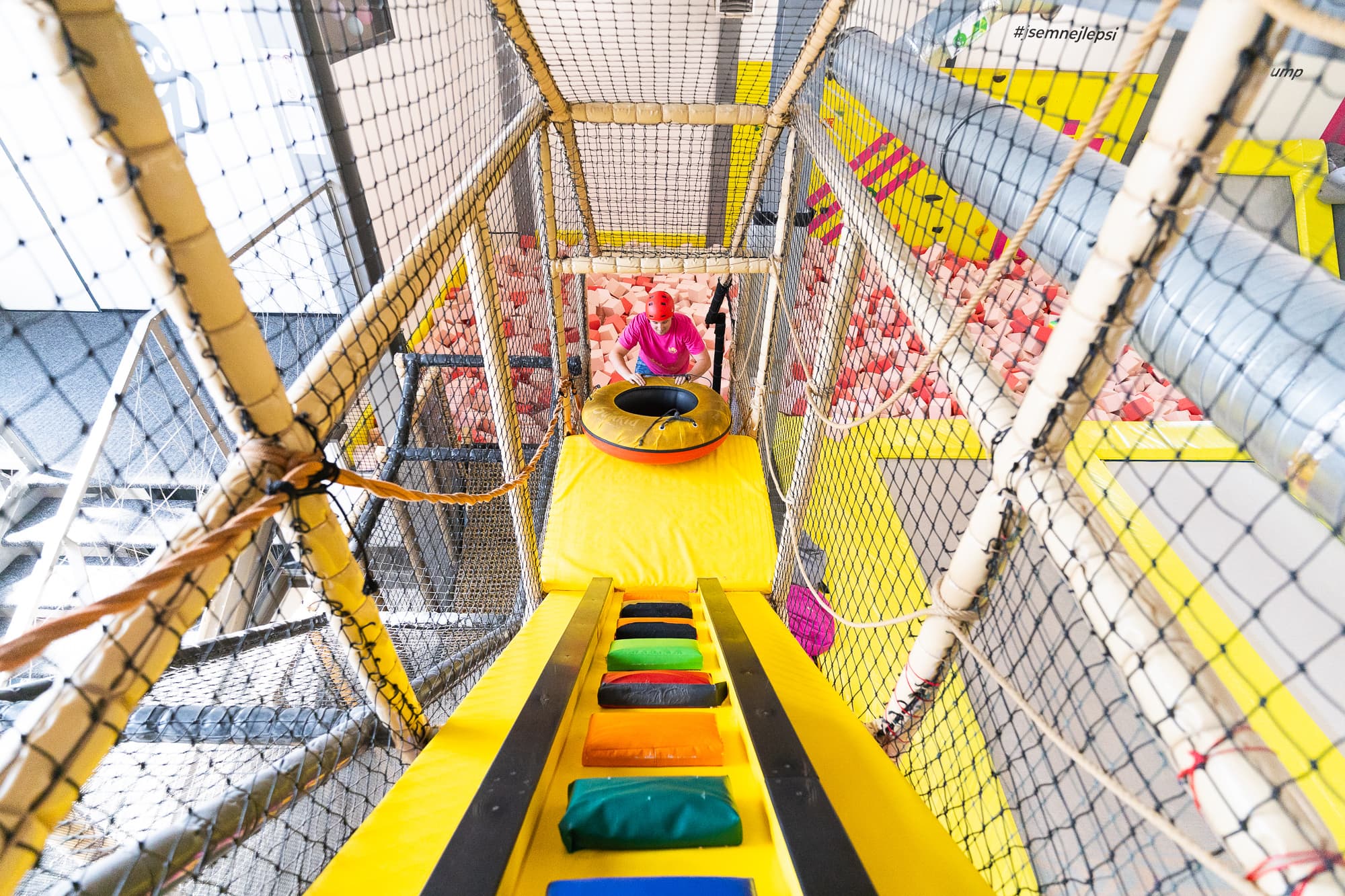 1. Zjedź i bezpiecznie wyląduj w miękkim basenie z piankami